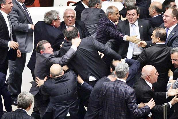 The lawmakers in Ankara turned lawbreakers, using violence against their opponents inside the Parliament.