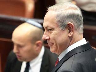 These are the words of care taker Prime Minsiter Benjamin Netanyahu, at a right wing rally in Jerusalem. Under the banner “Uniting for the sake of the Land of Israel,” Netanyahu was joined by Economy Minister Naftali Bennett, who leads the Jewish Home party, as well as MK Eli Yishai, leader of the hard-right Yachad party.