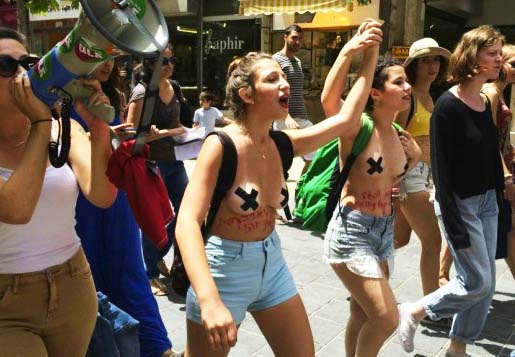 These two sluts blocked the traffic in Jaffa Street in Jerusalem Friday.