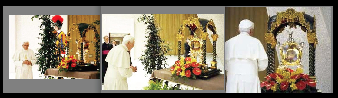 Pope Benedict bow and pray to the alleged skull of apostle Andrew, before his head is returned from Rome to the Greek Orthodox Church.