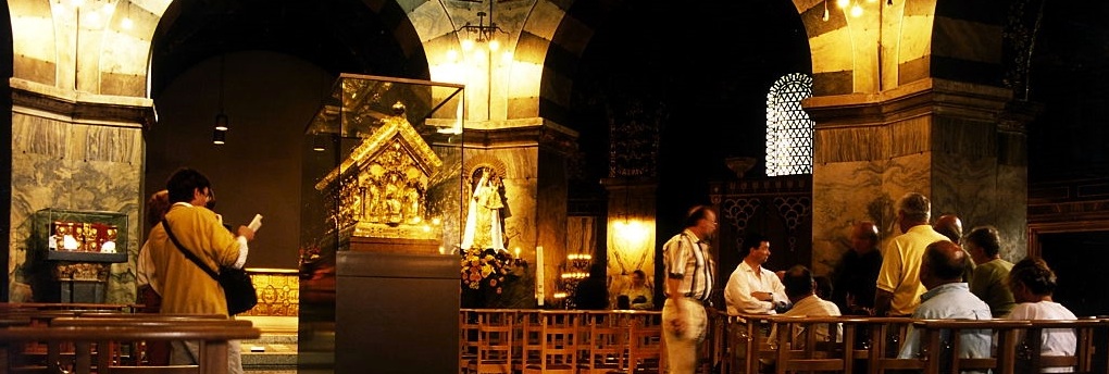 The Shrine of St. Mary rests in the choir of the church and dates from 1220-1239. Adorned with the figures of Christ, Mary, Charlemagne, Pope Leo III and the Twelve Apostles, the shrine contains the four great Aachen relics: St. Mary’s cloak, Christ’s swaddling clothes, St. John the Baptist’s beheading cloth and Christ’s loincloth.