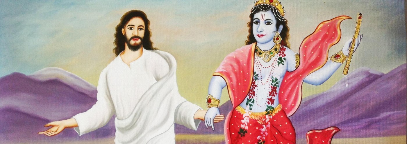 A copy of Jesus, and Krishna hand in hand. Both can save, claim Hindus and New Age.