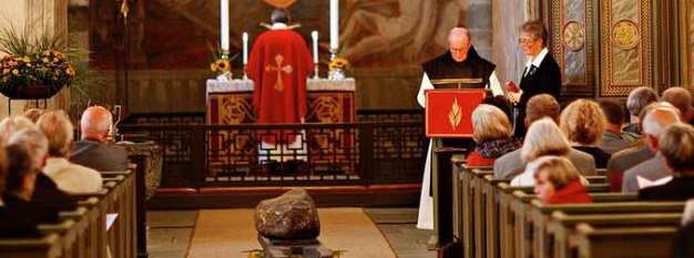 Lutheran priests carried a “holy stone” into the church at Stiklestad. Some of the priests called for a return of a “holy bone.”.