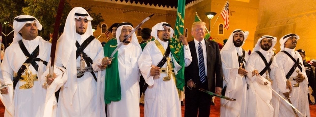 Trump dances the sword dance hailing the sons of Muhammed, in 20th of May 2017 in Saudi Arabia.