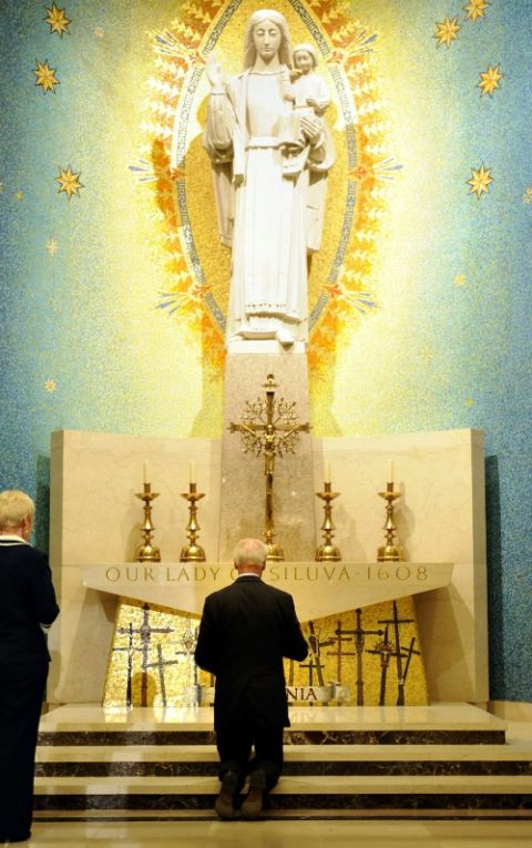 In September 2011, Vice President Joe Biden kneels in the chapel of Our Lady of Siluva at the Basilica of the National Shrine of the Immaculate Conception following a memorial Mass for Vatican diplomat Archbishop Pietro Sambi in Washington.