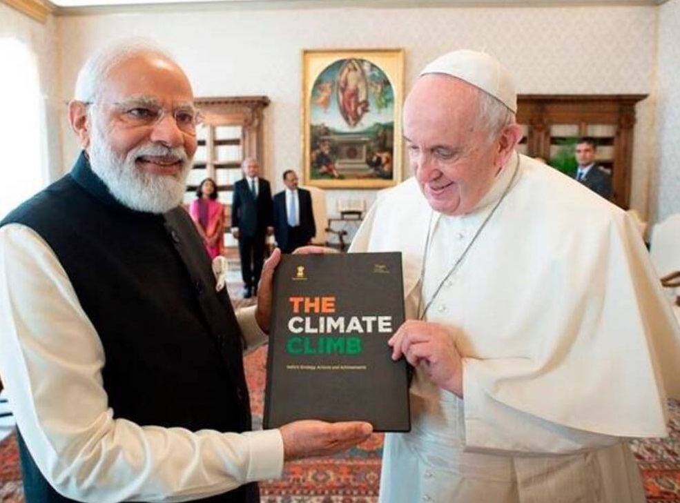 The Pope is greeted by one of the main idol worshippers in India, Prime Minister Narendra Modi. Not calling the Indian PM to repent, and embrace the true and living God, the Pope agree to jointly promote a new religion. The Climate Religion. Built on the idea that man is good, and by good deeds capable of saving the planet.