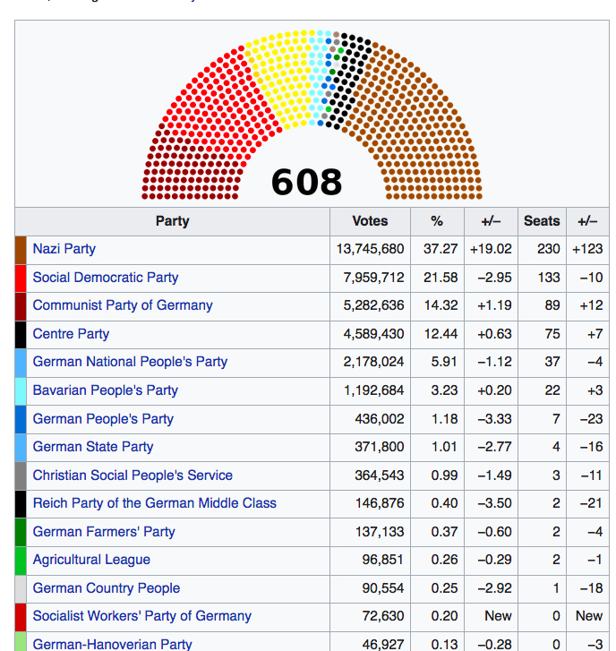 The similarities between Canada in 2022 and Germany in 1932 are more than interesting. First the results of the German election in 1932, Hitler supported by 37 per cent of Germans.