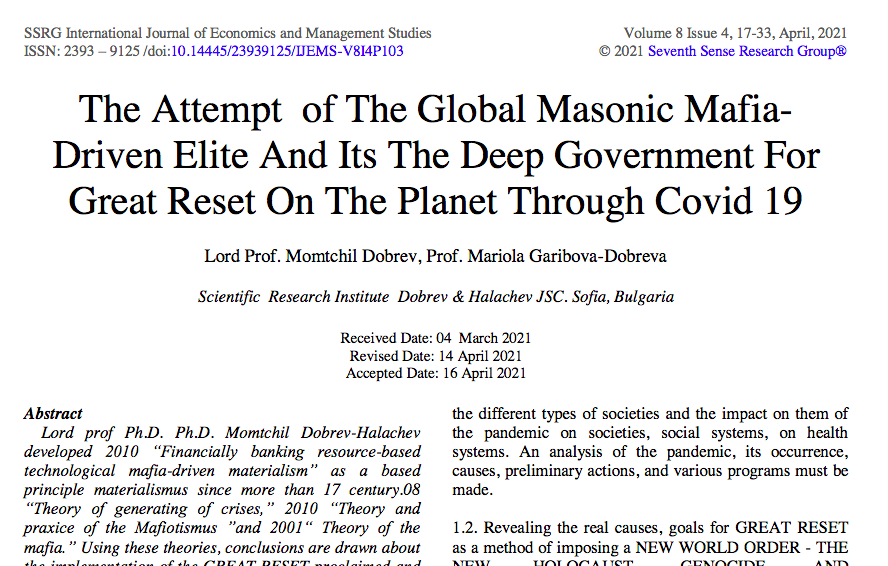 There are quit a few professors who warns against WEF and Freemasons plotting “The Great Reset”. But these voices are not permitted to be presented in mainstreem media. Klaus Schwab is very clear on his motives. Covid-19 must be used to enforce his NWO.
