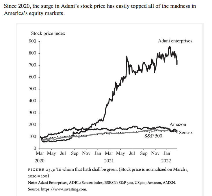The greed around Adani has only been matched by the political ambitions of Indian Prime Minister Narendra Modi (BJP). Adani have been given the green light to do whatever he desires. As long as Modi can appear with his picture on front page full page adds in Indian national newspapers, when he inaugurates all kids of «developments» projects. Almost all of it financed by issuing debt bonds. The account deficits have reached astronomical levels. Now the bubble finally bursted.