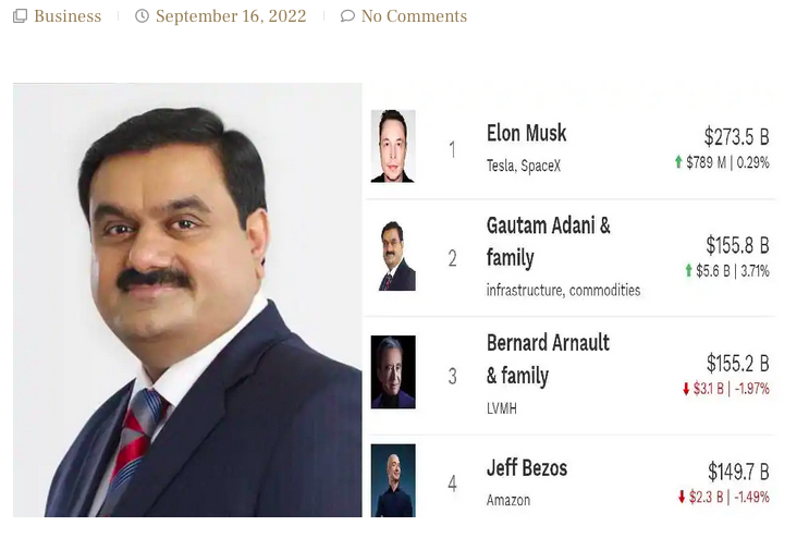 September 16th, 2022: World’s Richest List: Adani overtakes Jeff Bezos to become 2nd | Gautham Adani becomes 2nd richest person in the world