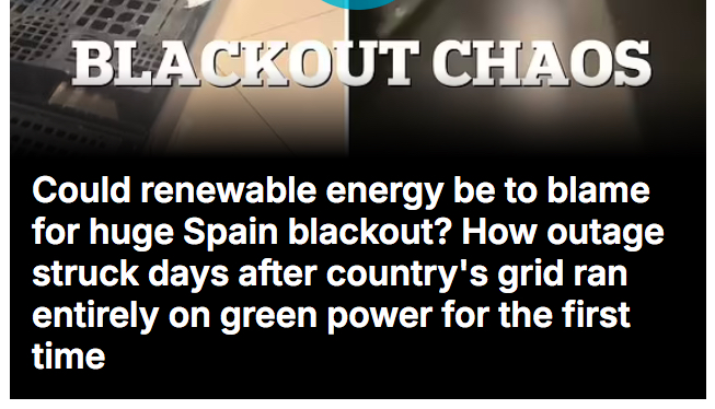 Could renewable energy be to blame for huge Spain blackout? How outage struck days after country’s grid ran entirely on green power for the first time…