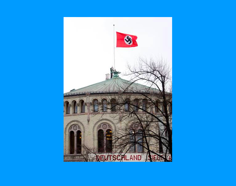 In addition, a swastika flag was flown from the roof of the Storting building for two hours.