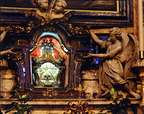 The saint was originally buried in Rome but after canonisation the head was removed and has been placed in the sanctuary.