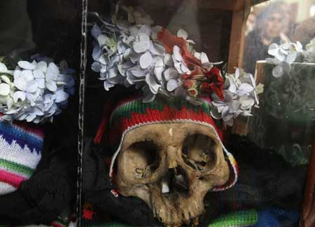 Some Bolivians believe a person has seven souls, and one of them remains in the skeleton, after they’ve been buried. Once the other souls have left for heaven, the remains are dug up and the skull taken home and cared for. If they’re not respected, skulls can bring bad luck to a household, ruin the harvest and even break up a family. But if they’re properly taken care of, you can ask the skull for favors.