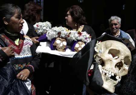 Dia de los Natitas (Day of the Skulls) is an ancient Bolivian ritual where skulls are decorated with flowers and pampered with cigarettes, coca leaves and other treats.