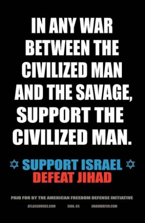 A conservative blogger who once headed a campaign against an Islamic center near the Sept. 11 terror attack site won a court order to post the ad in 10 subway stations on Monday. It reads, “In any war between the civilized man and the savage, support the civilized man. Support Israel. Defeat Jihad.”