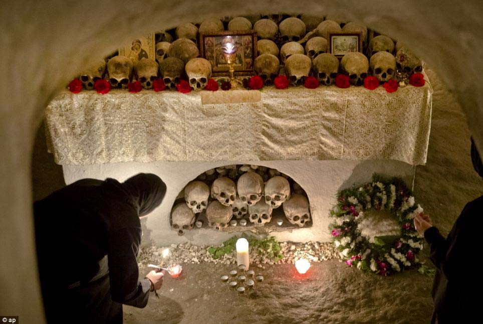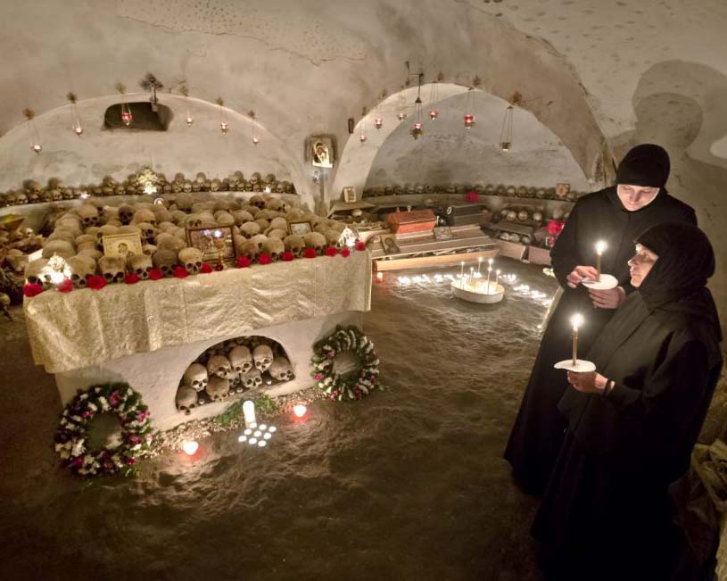 Romanian nuns celebrate Easter among the skulls of their dead sisters as Orthodox Christians pack churches around the world.