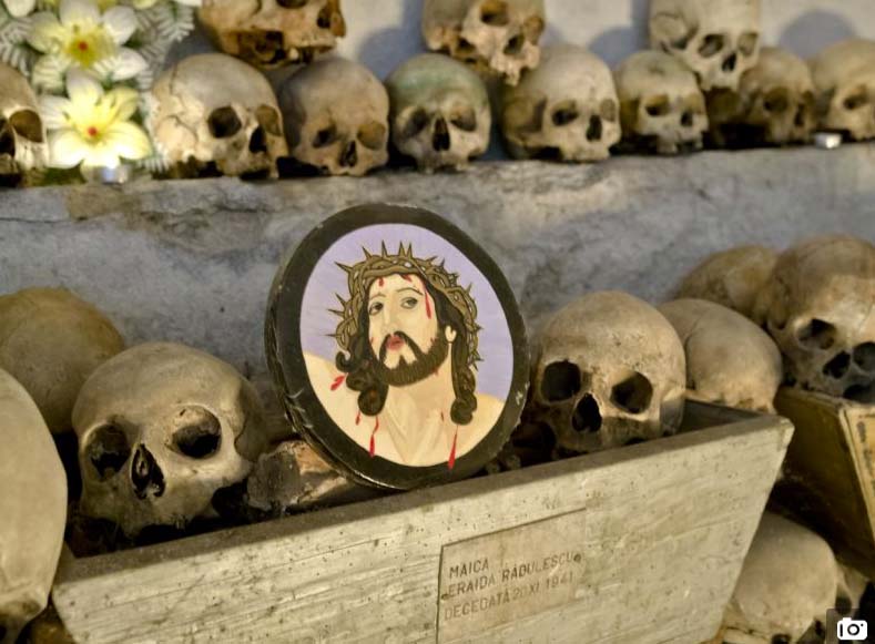 The nuns watch the cut of skulls. They might be the remains of Protestant martyrs.Even under the altar, the blood of the martyrs cries out from the ground.No place for sane people. A grotesque form of worship, that defame the Holy Spirit and Jesus the Messiah.
