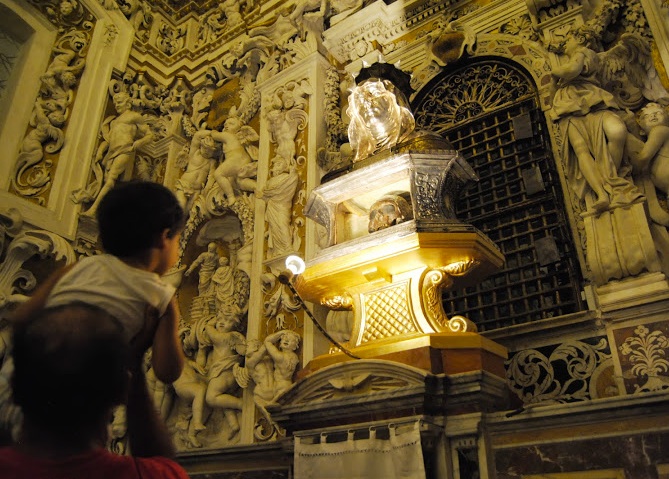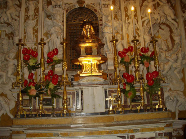 The workers discovered more than 300 bones belonging to two skeletons in one of the sealed crypts. The skulls were packed inside a pair of silver-and-gold busts deep in a cathedral vault. Legend has it that they belonged to two young Christian martrys, Saints Chrysanthus and Daria.