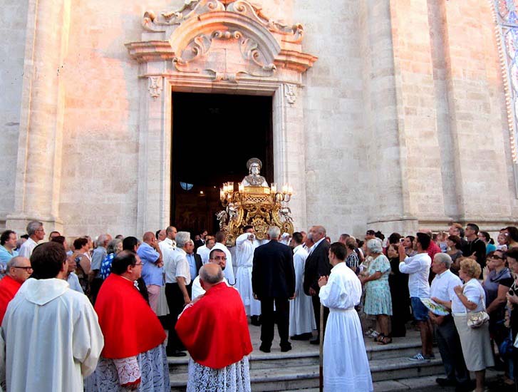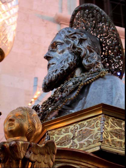 Watch a local bishop in Modena in Northern Italy, bowing and offering incense before busts with two 1.700 year old skulls.
