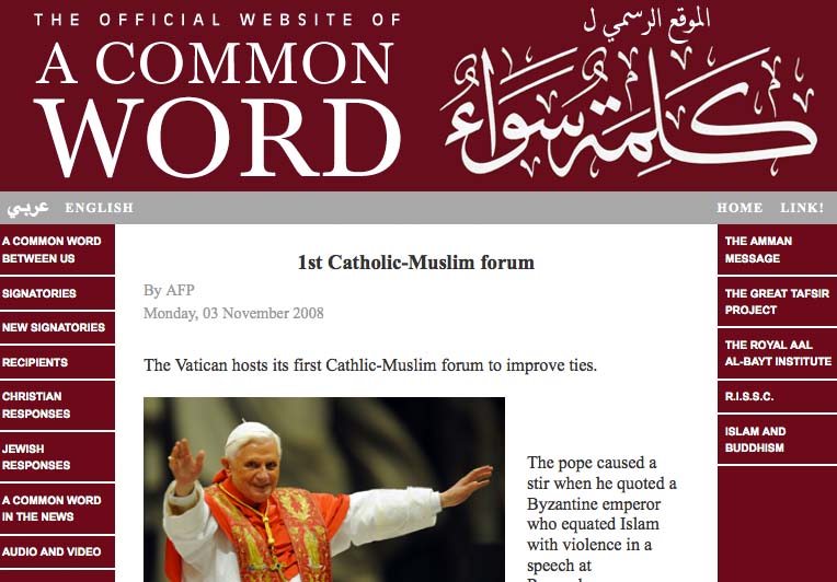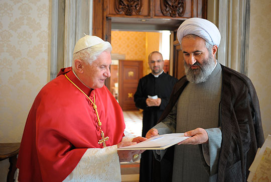 This is a statement by the Pope Benedict XVI in 2008, recorded by Zenit News Agency, a Catholic news provider. The Pope addressed the members of the newly formed Catholic-Muslim Forum at the conclusion of its three-day seminar.