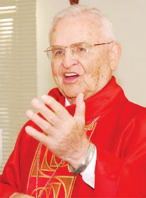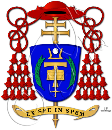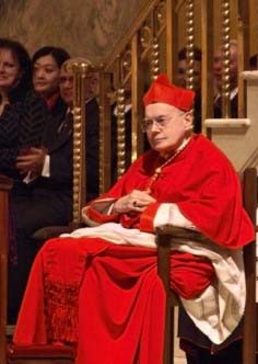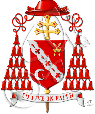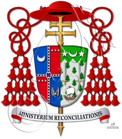Edmund Casimir Cardinal Szoka is the President Emeritus of the Governatorate of Vatican City State. His banner looks like the flag of Turkey, and has a crescent moon in its center.