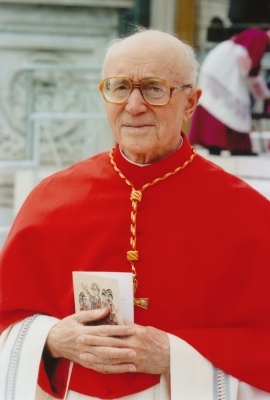 Cardinal Albert Vanhoye was born in France, and is a priest that represent the Jesuits who has formed the “Society of Jesus”. His banner must be the best proof there is, that the Roman Catholic celebration of the Eucharist, is worship of the sun god. A more visual evidence can hardly be found inside the Vatican system.