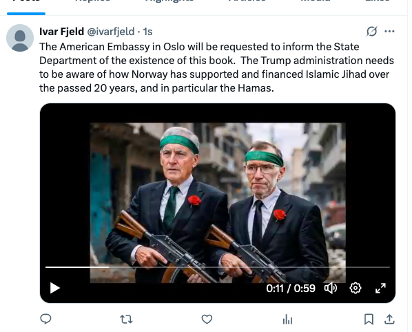 Yesterday, the Trump Administration told Canada that a recognition of “Palestine” will trigger a stern reaction. The USA should not let Norway continue to fly under the radar, attacking Israel. We need to bell the black cats.