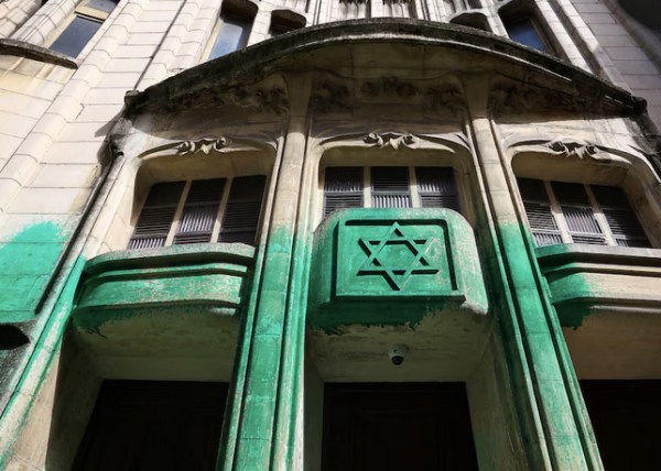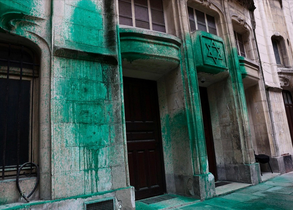 The national color of Saudi Arabia painted on a synagogue, marks the start of persecution and planned mass murder of Jews in France.