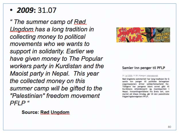“The AUF had already entered into a formal educational program with the Fatah Youth from 2006 onward. They called this Palestinian body their ‘sister organization.’ Members of Fatah Youth were regular guests at Utoya camps.