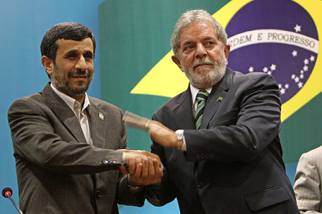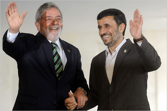 Hale..lula. Brazil`s president Luiz Inacio Lula da Silva celerates the nuclear deal with the Fascist dictator of Iran, Mahmoud Ahmadinejad.
