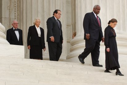 The US Supreme Court is made up of six Roman Catholics, two Jews and Justice Stevens.