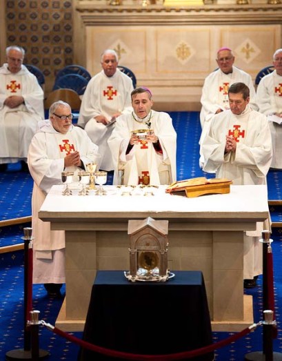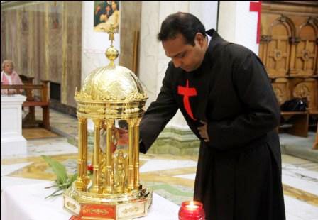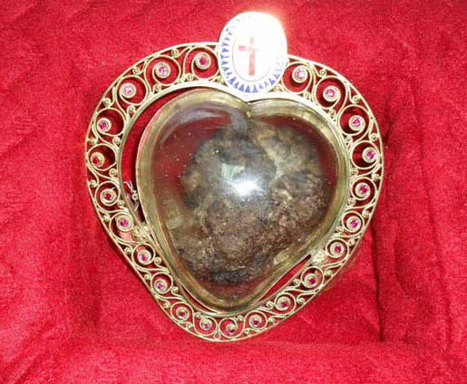 You can read more about the saints who got his heart cut out, and is supposed to bring blessings to Roman Catholic priesthood and all members of the Order of Knights of Columbus.