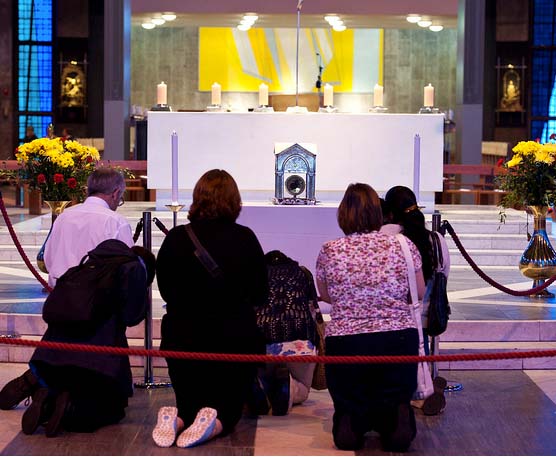 An estimated 6,000 pilgrims braved heavy rain to venerate the relic of St. John Vianney’s heart when it arrived in England in July 2012.