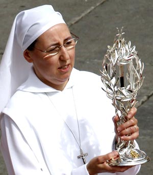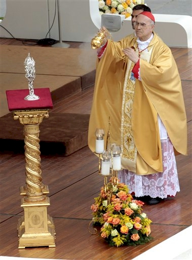 Vatican secretary of state, Cardinal Bretone, offers incense to the “Holy blood” of the late pope.