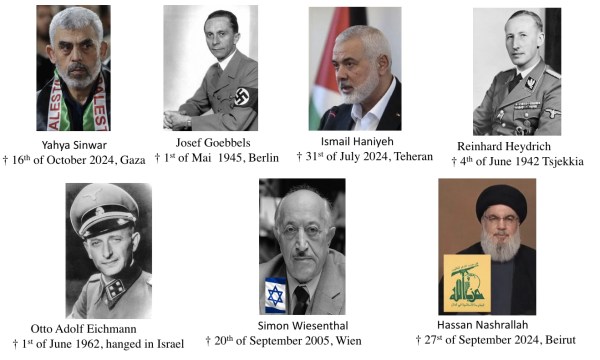 Three of the most profiled Arab nazis of the Middle East have abeen assasinated. The graveyards are full of people planing to exterminate Gods chosen people. Nazi-Hunter Simon Wisenthal would have been trilled.