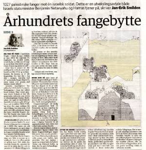 On the day 1027 “Palestinian prisoners” were released from prisons in Israel, the Norwegian tabloid “Dagbladet” released a drawing using Nazi-propaganda to taint and demonize Israel.