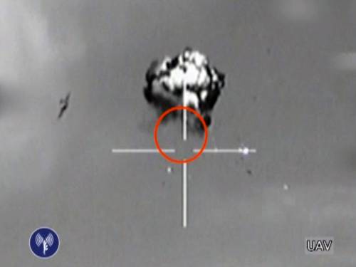An F-16 fired a missile and struck the drone some five miles from the coast of Haifa over the Mediterranean.