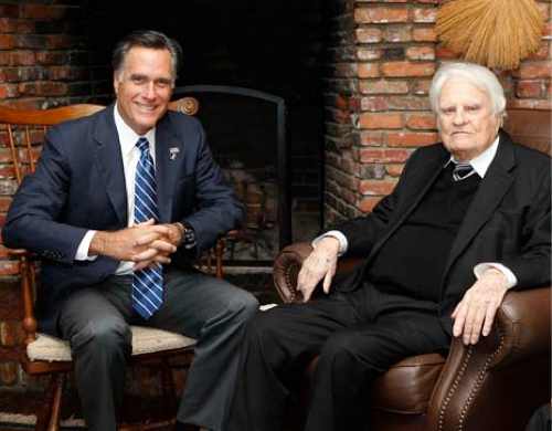 The beloved evangelist, who has preached the Gospel to more people in live audiences than anyone else in history, prayed with Romney, a Mormon.