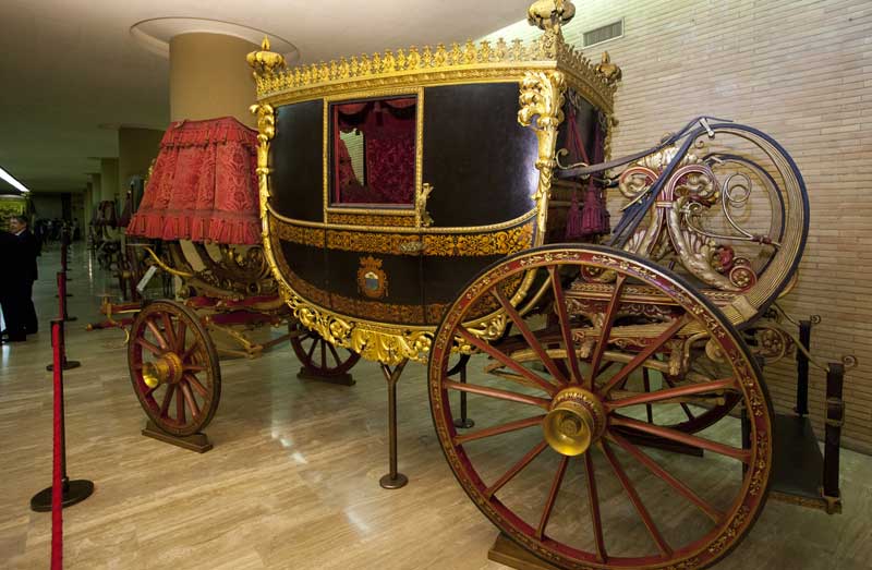 The picture is of an immense six-horse-drawn Gran Gala gilded carriage whose wooden wheels are more than five feet high. It was built around 1826 for Pope Leo XII.