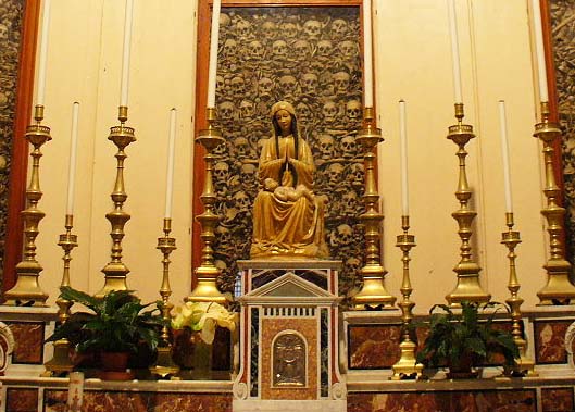 Hundreds of skulls looks down at the alter of this Catholic Chuch in Southern Italy.
