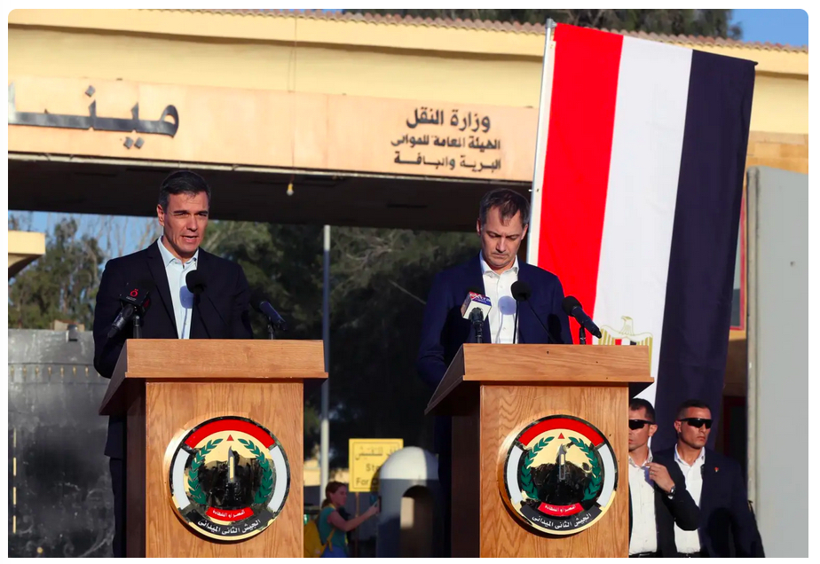 24th of November 2023: Spains Prime Minister Pedro Sanchez on the Hamas pulpit at the Rafah crossing in Gaza, legitimizing the Islamic terror-group.