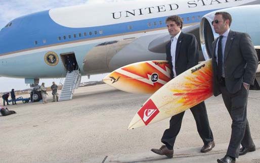 Taking a forced break on the Galapagos Island, sources confirms Obama spent time surfing.